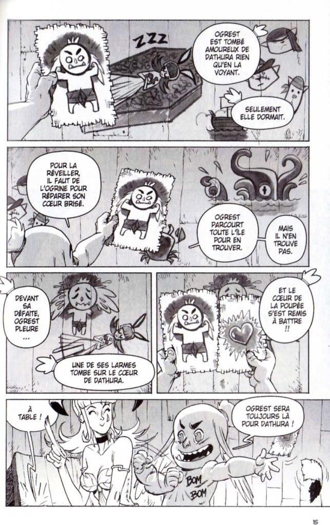 Résumé : Sur une île paradisiaque, située loin de l’agitation du vieux continent, vit Ogrest. Ce petit ogre coule des jours heureux avec Otomaï, son créateur, et Dathura, une poupée à la beauté divine… Jusqu’au jour où les Dofus, précieux oeufs de dragons magiques, échappent à la surveillance de leurs gardiens. C’est une aubaine pour tous les aventuriers en herbe, mais pas pour notre trio, dont l’île héberge un Dofus. Très vite, la convoitise et la soif de pouvoir les entraîneront dans une sombre machination…