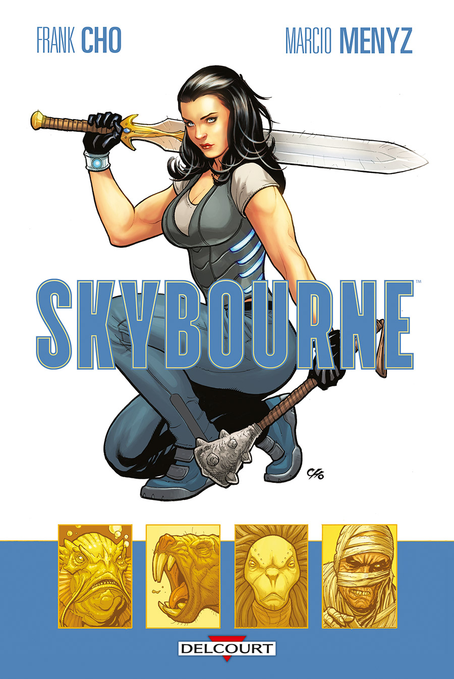 STOP ! Rassurez-vous (ou soyez déçu), il n’y a pas de sexe (quoique). Comme expliqué dans le résumé de son artbook, Frank Cho maîtrise les outils et le langage du corps féminin pour fabriquer des corps de rêve, dirait-on, de façon jamais vulgaire. Mais ici, ce n’est pas l’œuvre de l’auteur : c’est plutôt une histoire originale avec une vraie intrigue. Frank Cho est connu pour avoir collaboré dans l’univers de Marvel (Hulk, Avengers, Wolverine, X-Men). Avec Skybourne, il nous livre cette fois son premier projet personnel s’inscrivant dans le mythe et la fantasy : Merlin, Excalibur, immortels, dragons… C’est donc une quête aux armes magiques, notamment celle d’Excalibur, qui commence. Après un échange tendu qui se termine en effusion de sang (la BD est vraiment sanglante), Grace Skybourne se retrouve en face d’un machiste : Merlin, qui projette de détruire le monde, non pas sans raison. Ainsi, le frère de Grace, à tendance suicidaire, est dépêché pour sauver le monde. Génial, non ?