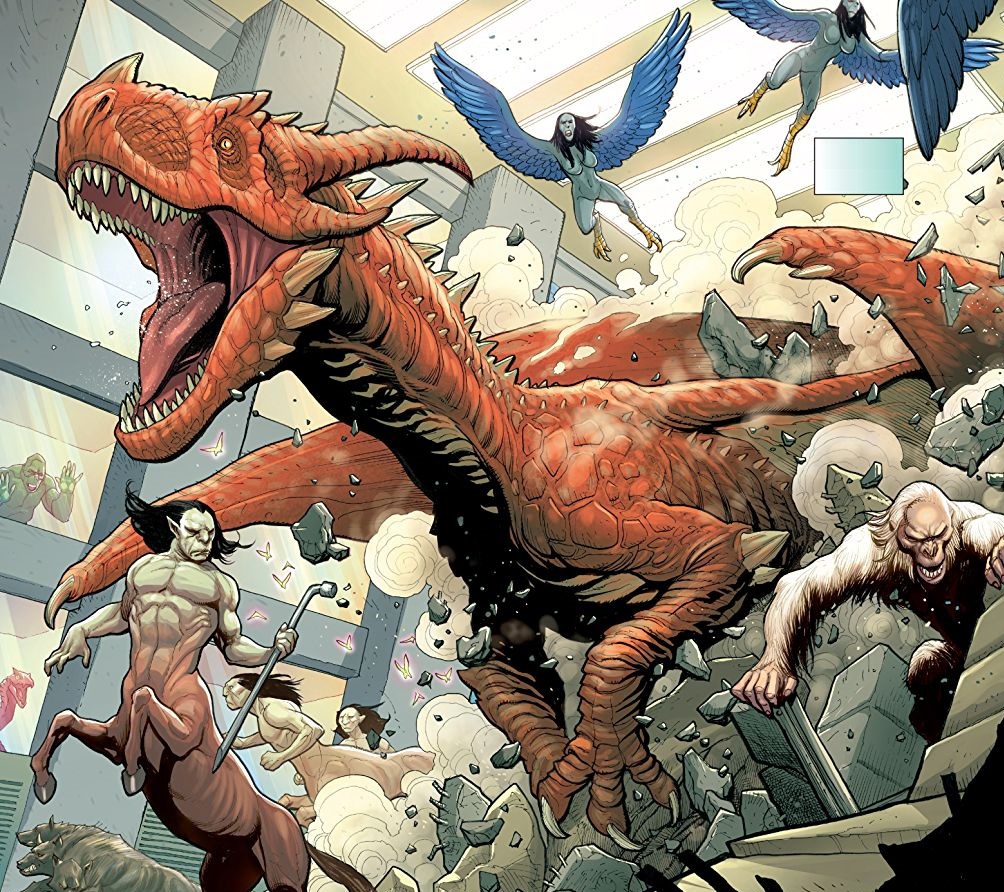 Dans cette histoire au rythme endiablé qui fait danser les rats (pardon, j’ai en tête la musique des Ratz), on retrouve quelques touches humoristiques qui font plaisir et qui allègent un tant soit peu l’action de la BD qui ne fait pas une seule pause. Quand ce n’est pas le sang qui coule, c’est l’intrigue qui avance, et quand il y a du chemin devant soi, il y a toujours un centaure pour se faire une licorne. Plus sérieusement : on ne s’ennuie pas. Au point que si votre lecture se limite à un chapitre par jour, vous aurez non seulement du mal à ne pas vouloir continuer, mais en 3-4 jours, la BD est refermée. Quant au dessin, même si pour le moment je suis novice en BD, il est beau et assez détaillé. Cependant, on retrouve un style assez banal des dessins d’action, on est loin du style personnel et original des BD d’Ankama ou du très coloré et éclatant Gumball (oui, j’essaie de faire tant bien que mal des liens entre mes différents articles, c’est recommandé pour que vous lisiez plusieurs de mes articles). Il n’empêche que l’on retrouve quelques planches entières par-ci par-là vraiment magnifiques.