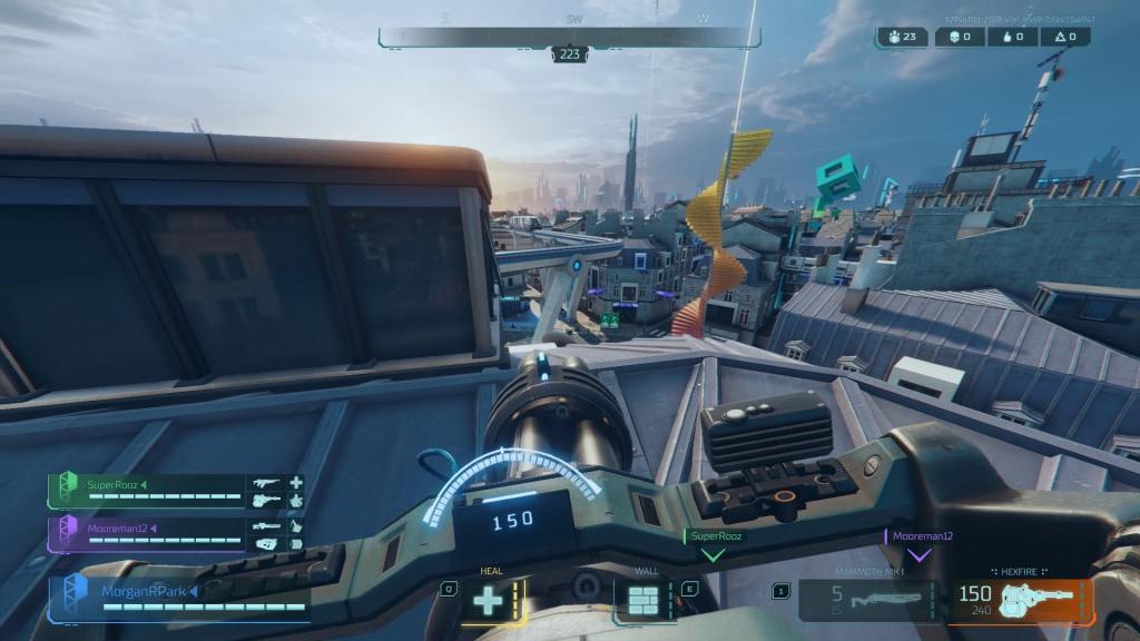 J’adore le style contemporain-futuriste de HyperScape. Le fait que l’on soit un personnage qui joue dans un jeu-vidéo. La zone qui prend la forme de quartiers qui tombent, les deux possibilités de victoire, le mode de jeu temporaire combats de faction (4 escouades de 20 joueurs environ), les hacks et le système de fusion. Il y a une ambiance dans ce jeu qui le rend ultra-fun.