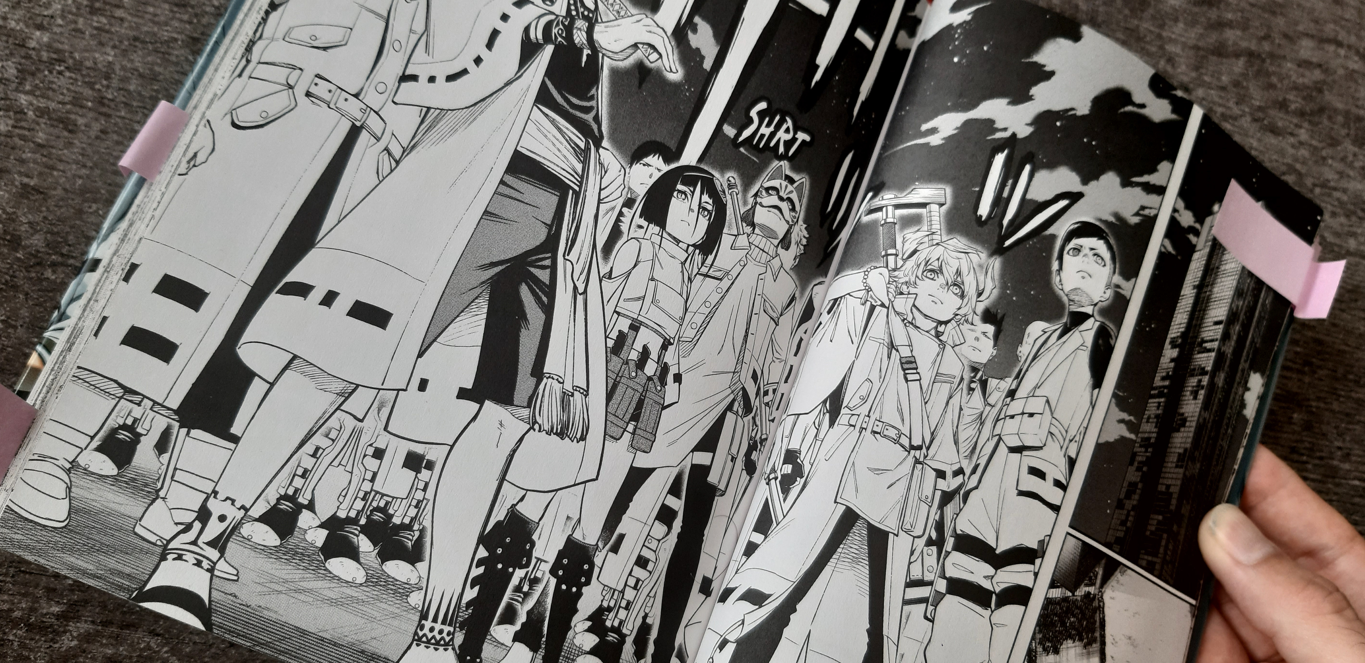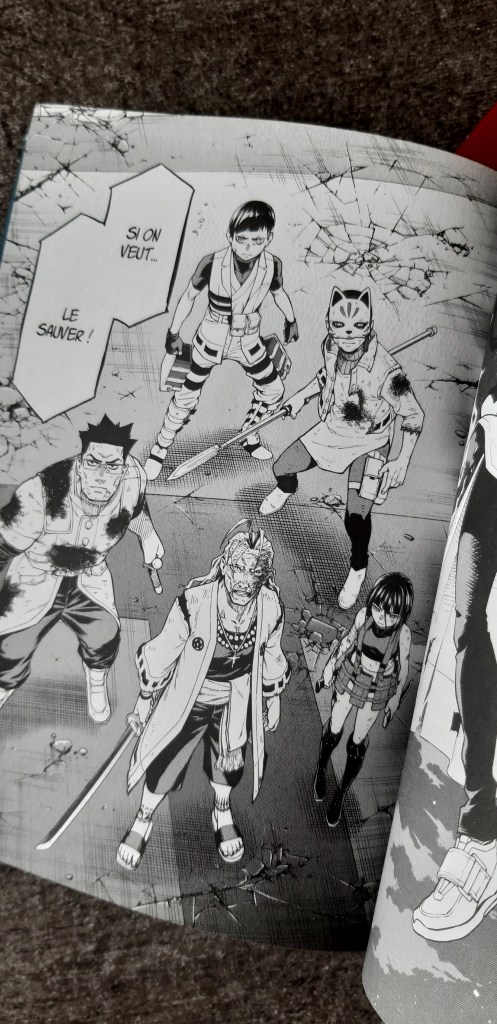 Devant la tour Mito, siège du conglomérat, les Fossoyeurs se sont réunis et s’apprêtent à affronter les possédés en armée. C’est l’ultime combat, une guerre ouverte déclarée. Les autorités ont évacué la zone, le sang va couler, des têtes vont tomber. Du premier tome au quatrième du Fossoyeur, Watanabe est passé d’une histoire centrée sur un personnage solitaire à une guerre coalisée, sans que la transition ne soit forcée. On pourrait dire qu’en contrepartie, il nous manque un peu de détails sur les généraux fossoyeurs et sur l’histoire du temple. Mais c’est avant tout l’histoire d’Hitsugi qui nous intéresse dans cette œuvre, et celui-ci doit rejoindre le sommet de la tour avec Karma afin d’assassiner le chef du conglomérat.