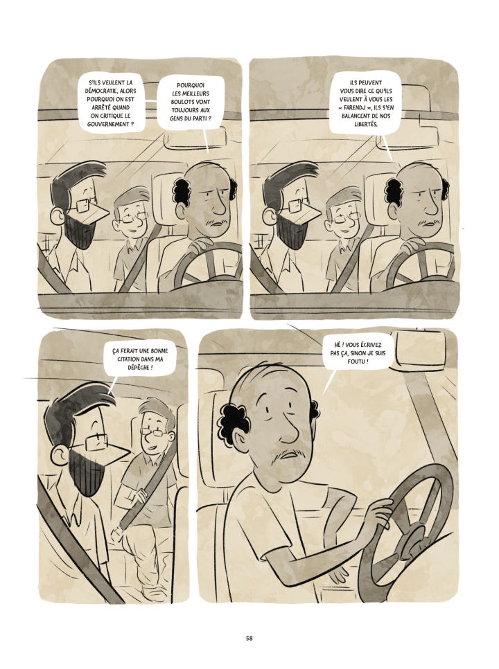 Résumé : Karim et Vincent sont correspondants de presse à Addis-Abeba. ils sont voisins et se retrouvent tous les jours autour d’un macchiato. Souvent ensemble, parfois chacun de leur côté, ils découvrent et explorent un pays en pleine transformation, véritable creuset des mutations du continent. L’Éthiopie – second état le plus peuplé d’Afrique et le seul à n’avoir jamais été colonisé – aspire à devenir le « lion africain ». Les deux journalistes observent cette marche forcée vers la modernité, opérée à coups de bulldozers et financée par la Chine. Mais la tension monte au sein d’une population multiethnique muselée par son gouvernement. De conférences de presse ampoulées en manifestations anti-régime, Karim et Vincent tentent de faire au mieux leur travail dans un pays qui leur laisse peu de libertés pour le faire…