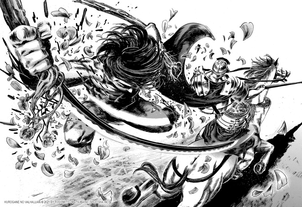 Tetsujiro a disparu on ne sait trop comment et le voilà au Valhalla. Du moins, c’est ce que dit la valkyrie Hrist qui l’aurait invoqué pour combattre une valkyrie supérieure et son général romain Crassus. L’intégration de personnages historiques et mythiques est équilibré : on ne rencontre pas de tout et n’importe quoi, et chacun a un rôle défini. C’est simple de suivre ! Devant ce nouveau monde, Tetsujiro est néanmoins perplexe. Il doit retrouver son fils Takemaru, et les problèmes des valkyries au Valhalla, cette terre où règne Odin et qui recueille les plus puissants guerriers, ne sont pas les siens. Mais comment pourrait-il rentrer sur Terre et voir son fils si ce n’est en abandonnant autrui ? D’autant plus que pour rentrer, il doit forcément se rendre à l’arbre-monde, Yggdrasil, où règnent les ennemis. Pas le choix, il décide de combattre.